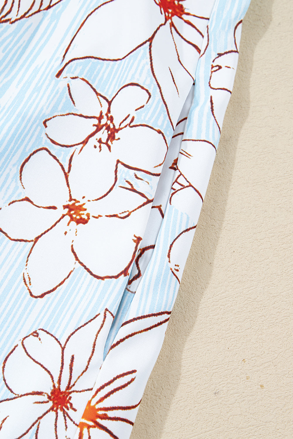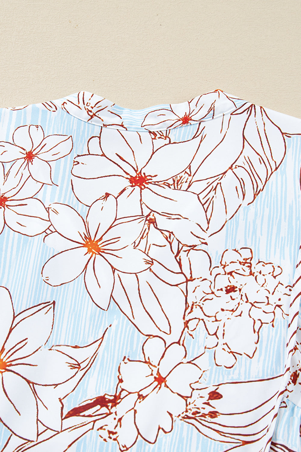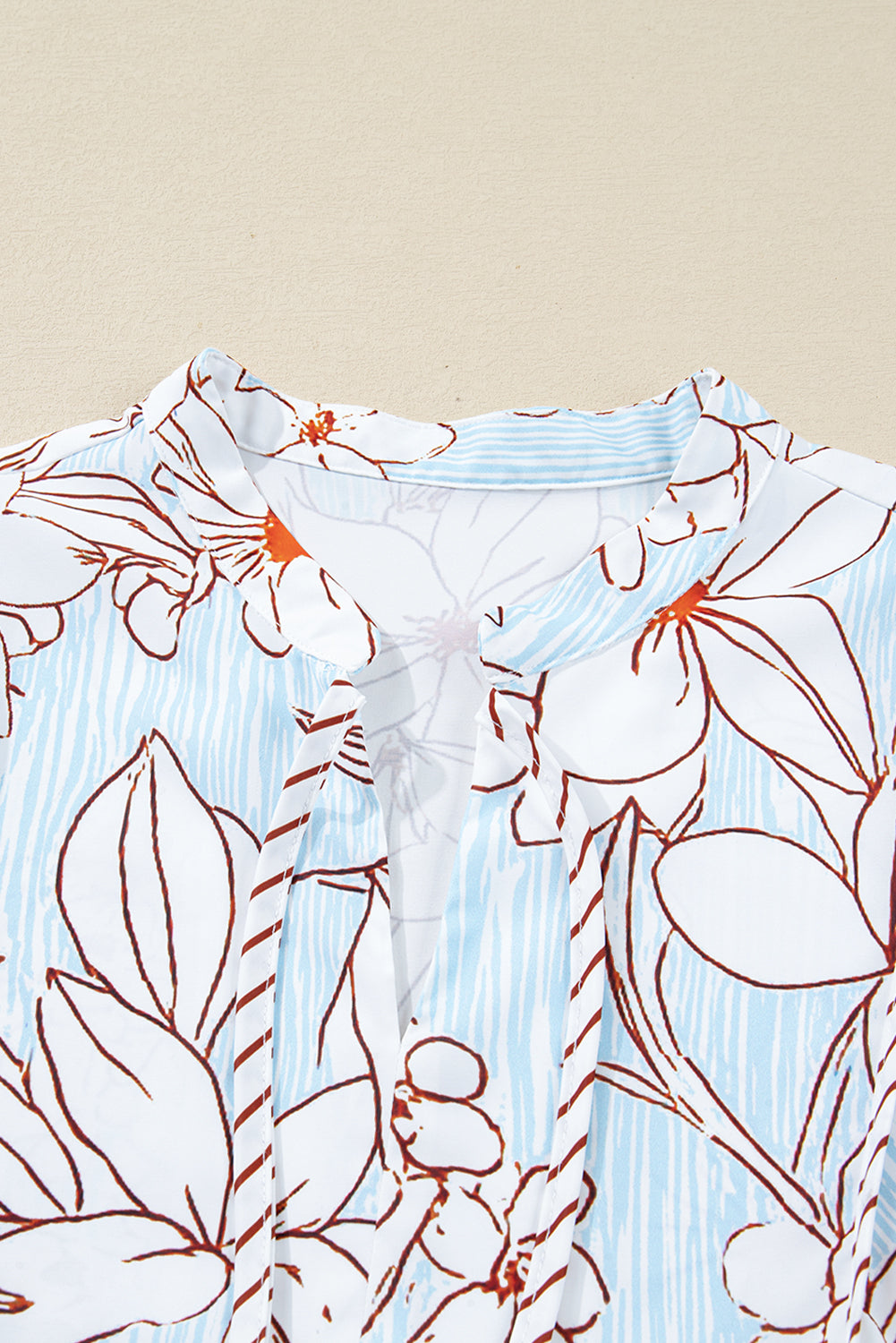 Brown Floral Print Tie Neck 3/4 Sleeve Mini Dress