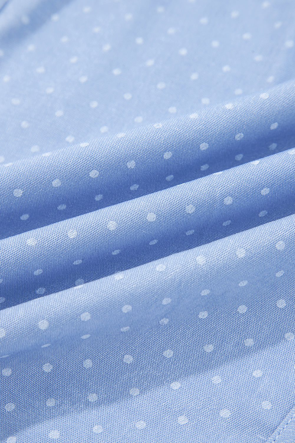 Beau Blue Lace Trim Patchwork Dotted Print Collared Denim Blouse