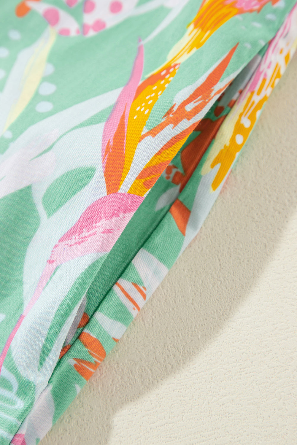 Green Abstract Floral Ruffle Trim Flutter Sleeve Buttoned Dress