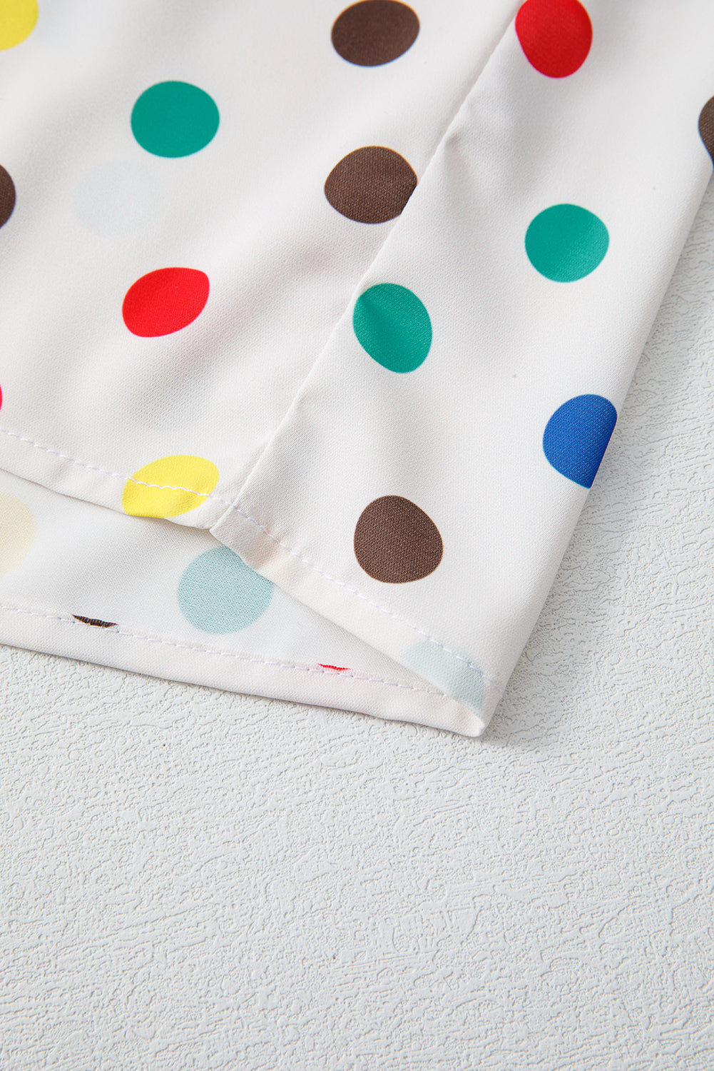 • Stand out with the vibrant and playful colorful polka dots of this top.