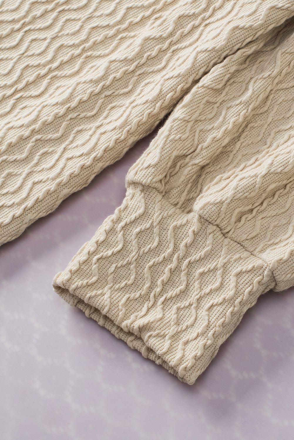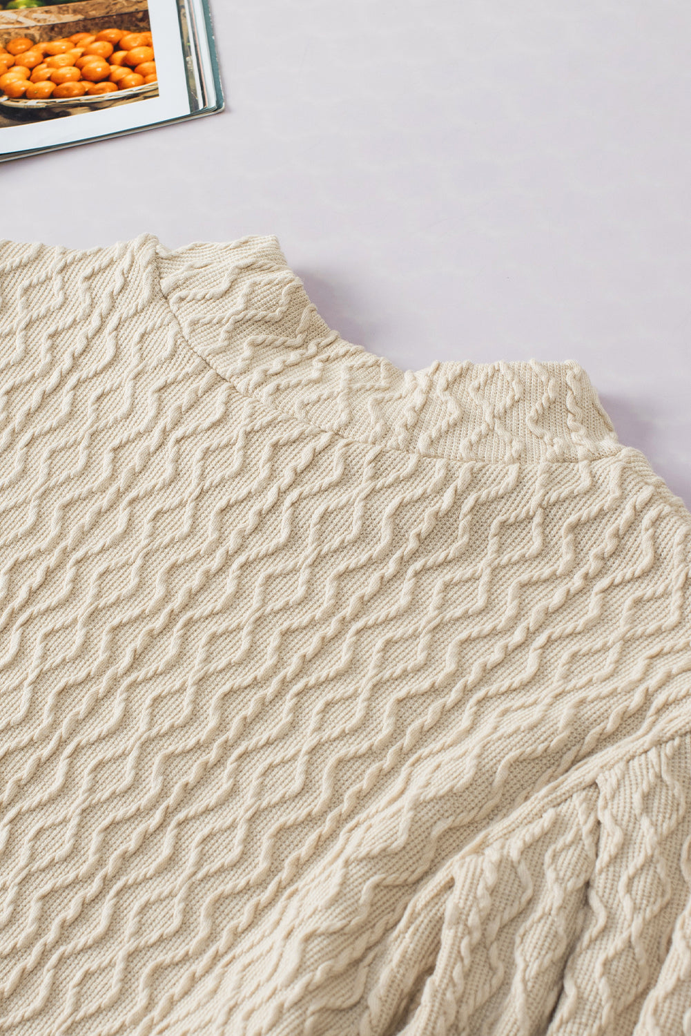Apricot Vintage Textured Puff Sleeve Mock Neck Top