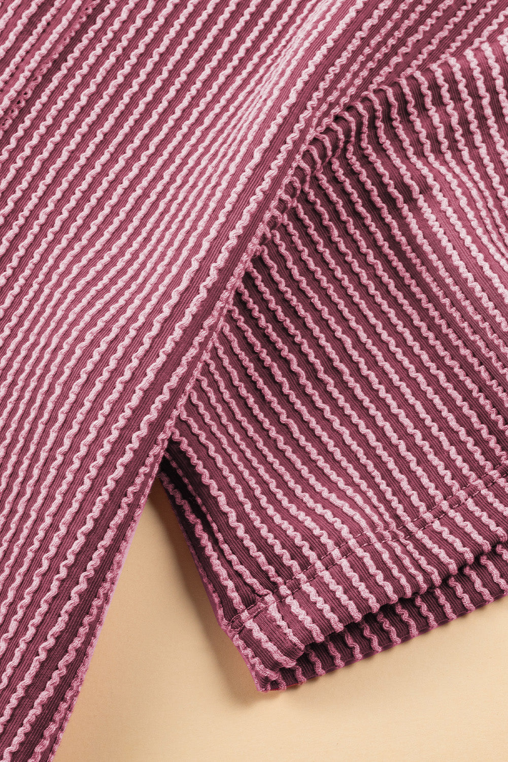 Rose Pink Textured V-Neck Dropped Shoulder Plus T-Shirt